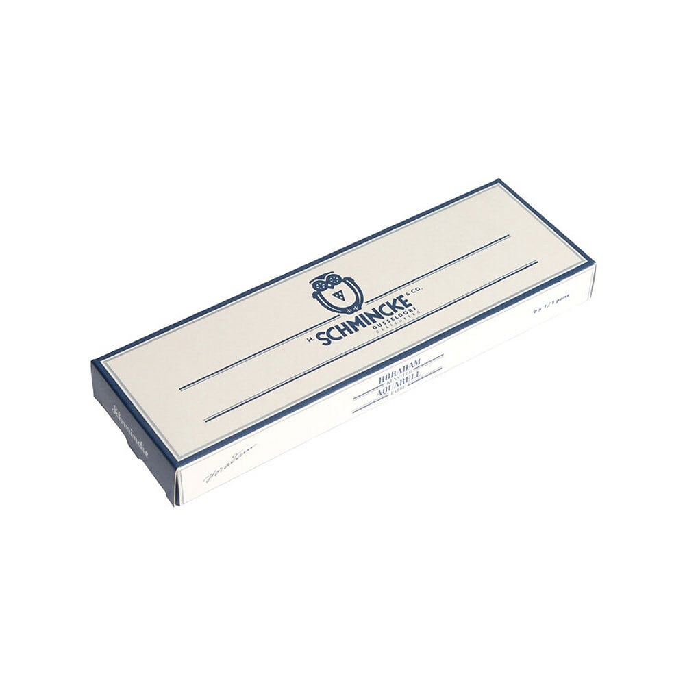 旧DIN201(ドイツの工業規格)に基づくこのセットには、当時建築家・製図技師・地籍測量士が技術図面を描くために使用していた9 色のホラダム透明水彩が収められています。各色は特定の建築材料を描くのに使用されました(例:オレンジ=青銅・木材、紫=鋳鋼、濃緑=軽金属や電線、グレー=コンクリート・石積み)。