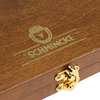 ・シュミンケのロゴがプリントされたビーチウッドのボックスに真鍮製の金具が付いています。