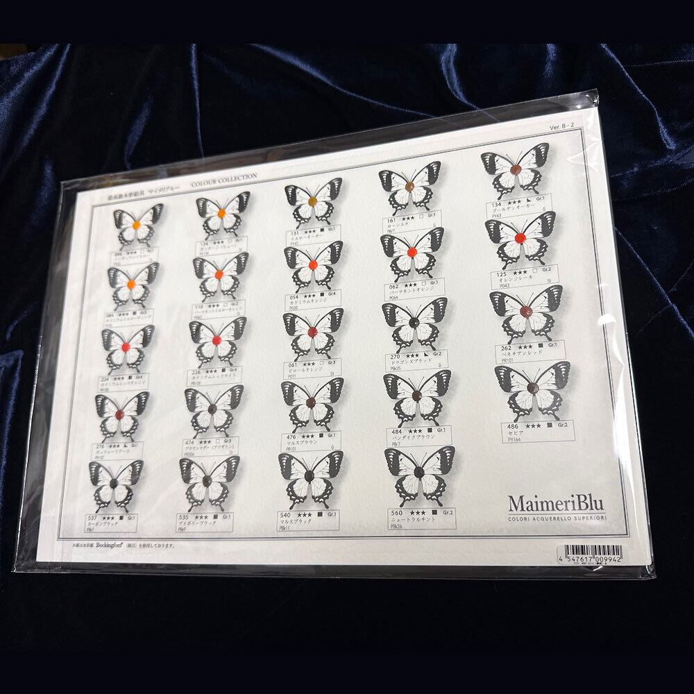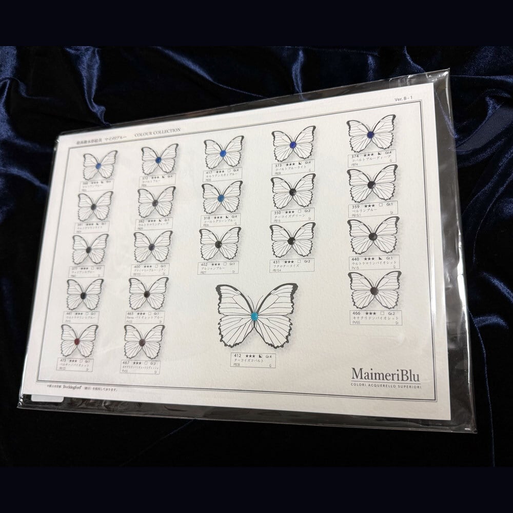 蝶柄が美しいドットカード。AとBを合わせるとマイメリブルー全色が揃います。