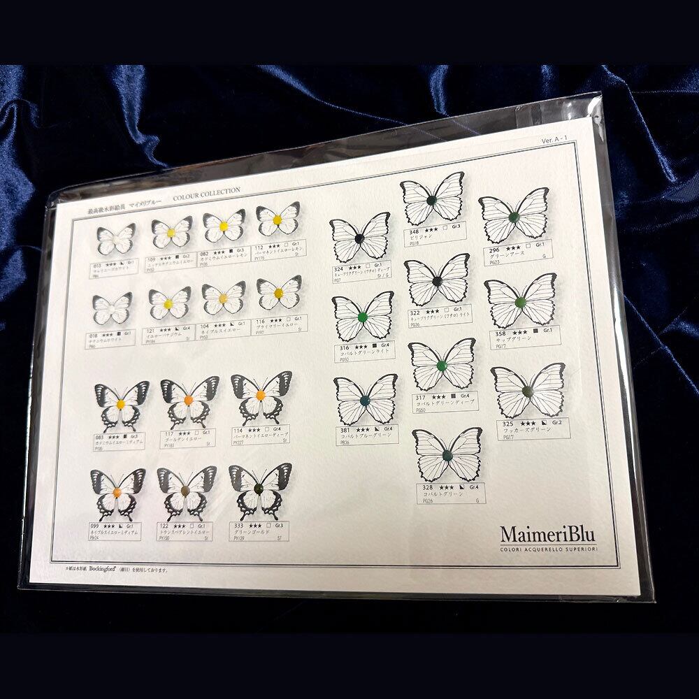 蝶柄が美しいドットカード。AとBを合わせるとマイメリブルー全色が揃います。