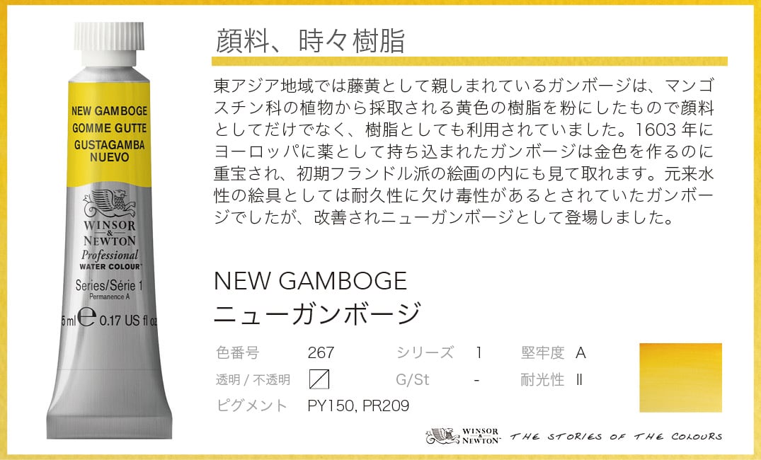 W&N PWC ニューガンボージ [ 267 | s1 チューブ 5ml ]